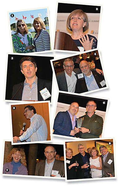 1. (l-r) The Vision Council’s Deb Castor and Rene Shepherd; 2. Silhouette’s Jan Corey; 3. Kering Eyewear’s Massimo Renon; 4. (l-r) REM’s Mike Hundert with recently retired Vision Council CEO Ed Greene; 5. ClearVision’s Peter Friedfeld discusses 3D printing; 6. (l-r) Zyloware’s Jamie Shyer and Shamir’s Ranaan Naftalovich; 7. Younger Optical’s Nancy Yamasaki with The Vision Council’s Jeff Enders; 8. (l-r) Robin Rhodes (Essilor Instruments), Bob Colucci (Essilor), Pam Colucci, and David Eichelberger (Adlens)