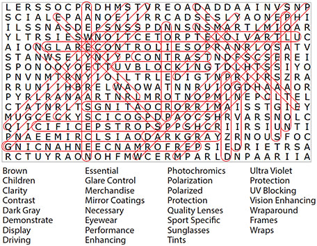 Today’s lens technology has opened up a whole new world of accuracy and personalization, giving ECPs an armory of solutions from which to choose. This puzzle includes terms that relate to measuring and manufacturing quality ophthalmic lenses. Test your skills on locating each of the words in this fun puzzle.