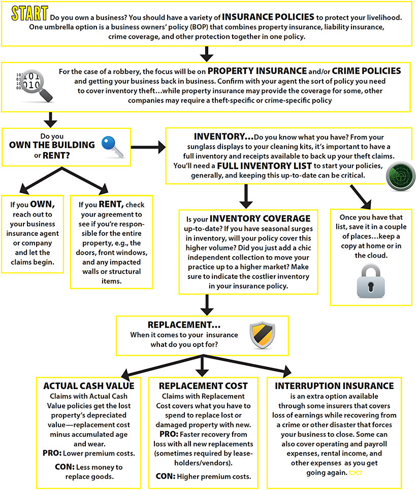 What's the hardest thing for eyecare professionals dealing with a recent break-in? “Clean up is a pain, but the worst part is dealing with the insurance claim,” says McLean. “The documentation required by the insurance companies can be very tiresome to gather.” (See insurance sidebar, p. 54.)