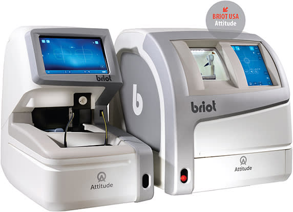 New from Briot USA (a brand of the Luneau Technology Group) is Attitude, an edging system with features, including Shack-Hartmann wavefront power mapping technology, that increase ease of use and broaden the scope of capabilities for opticians. By touching the screen on any point of the lens, users can see the measured power and even lay the final lens shape over the wavefront-based power map of the lens, ensuring the best optics.