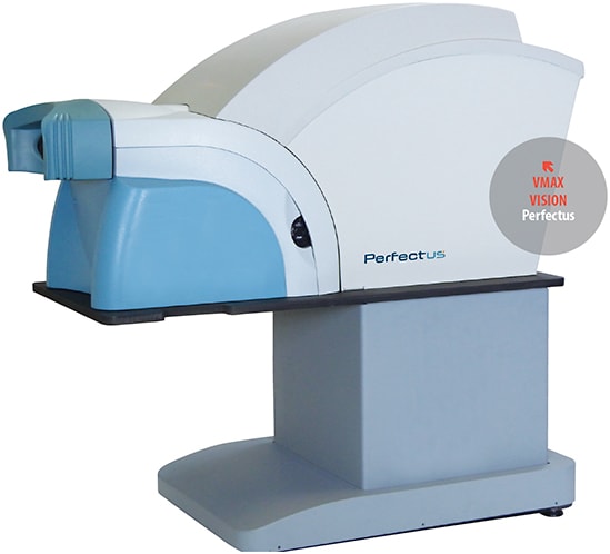 Vmax Vision, Inc., offers Perfectus, which combines the clinical benefits of its PSF Refractor, the space-saving virtues of its Integro refractor, and the advantages of a built-in wavefront autorefraction. The new unit requires only a 3-by-4-foot space, not a 16-foot lane.