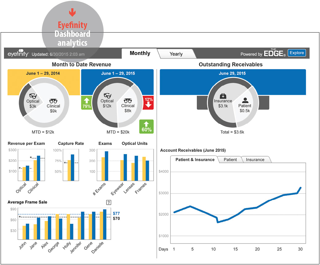 Eyefinity and Gateway Professional Network (GPN) have teamed up to create a business insights dashboard for OfficeMate, Eyefinity’s practice management solution. Powered by GPN’s The Edge, the analytics dashboard is embedded in the software and provides a quick overview of specific areas of the business. The dashboard tracks clinic and optical revenue, revenue per exam, capture rate, number of exams, number of optical units, average frame sale by optician, and account receivable data. It is available to existing customers in a service update called 12.0.3.