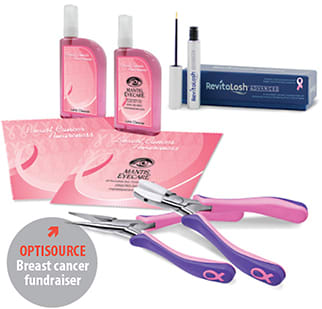 Some of the products involved in the fundraiser include RevitaLash (eyelash conditioner), microfiber cloths (custom imprinting available), lens cleaner bottles (custom imprinting available), pliers, and tool kits.