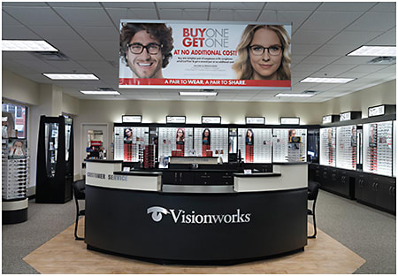 “If you think about a store as a rectangle, we have men’s on one side and women’s on the other, but there is no actual signage saying, ‘This is men’s and women’s,’” says Sue Hopeman, chief merchandising officer at Visionworks, a San Antonio-based chain with more than 700 stores nationwide. Instead, point-of-purchase and in-store visuals—often tied to brand advertising—give cues to the customer about where to look for specific product categories.