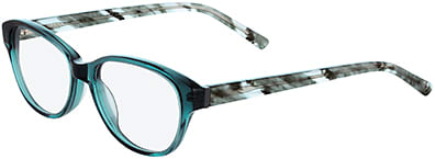 For boys, K4007 and K4008 are rectangular shaped with gradient laser-cut zigzag designs along the triple-laminated acetate temples. Two sister styles (K5006 and K5007) for girls offer brightly colored camouflage temple designs and a touch of sparkle. K5008 (pictured in Teal) is a boho-chic-inspired style with a temple feather design. Unisex style K4501 comes in Black, Navy, and Plum in a modified rectangle shape. Each style has a suggested retail price of $122.