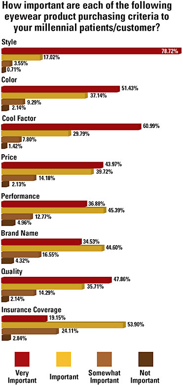 “[We appeal to millennial patients] by presenting ourselves as having personal service and knowledgeable personnel. We carry up-to-date frame styles that appeal to their age group. I find them to be careful with their money, but if they have insurance or their parents are paying [they] are open to new products.”