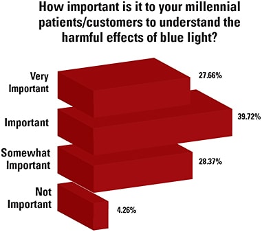 What percentage of your millennial patients/customers gets/buys a lens that has blue light protection?