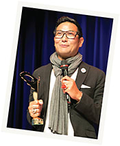 Blake Kuwahara accepts a Silmo d’Or for the optical category