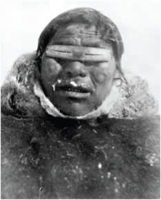 An Inuit man in the first known sunglass style