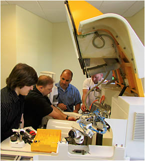 Satisloh technical trainer Dan Kurban (second from right) in action at Satisloh Academy