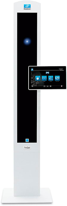 This kiosk system enhances the patient experience (through education, frame selection, and quick, accurate measurement), improves accuracy (precise measurements down to 1/10 mm), assists in dispensing the latest lens