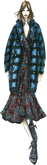 “Since I am always designing in season—winter to winter or spring to spring—I am always aware of colors I see too much of. I like to use a rich color palette and am often inspired by outdoor wear and skiwear.”