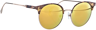 Pictured is xPOSE s102, an oversized, retro-inspired round frame with titanium temples and mirrored lenses for a sleek offering. Shown here in Tortoise/Gold, the style is also available in Rosé/Gold and Midnight Blue/Silver.