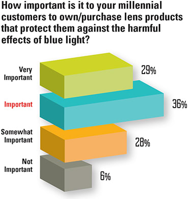 What percentage of your millennial patients/customers opts for a lens that has blue light protection?