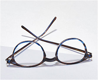 Pictured is Brody, a slender full zyl round style in acetate. Pictured in Cobalt, Brody is also available in Shale Tortoise, Tortoise, and Crystal Walnut.