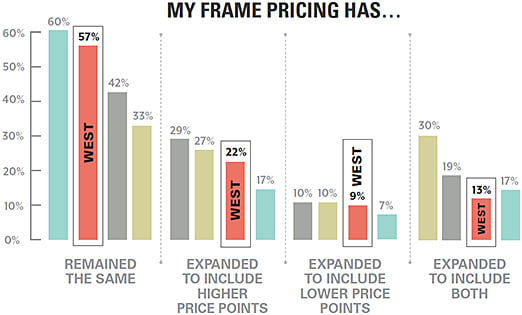 When it comes to the sexes, the South tops the charts in the sale of both women’s and men’s eyewear, while ranking lowest in unisex looks. And fully 30% of respondents say they’ve expanded to include both higher- and lower-end price points this year.