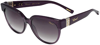 Pictured is style SCH234S, inspired by the company’s collaboration with musician and style icon Rihanna. The debut sunglass in Chopard’s iconic Ice Cube line, the SCH234S features an engraved “cubed” geometric effect and glistening ice-inspired zircon crystals.