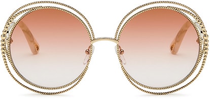 Chloé from Marchon Eyewear debuts the Carlina Chain sunglass, an iconic classic modernized by concentric chain circles and a fresh palette with lenses in Gradient Peach (pictured) and more.
