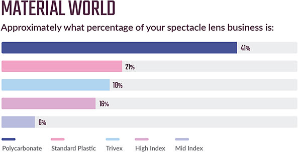 Looking ahead, ECPs predict the sale of PALs, computer/digital, and blue-light-filtering lenses will really pick up the tempo over the next two years, while bifocals and trifocals will hit more low notes. Here, our survey results paint the picture of today’s lens sales trends, from key challenges to what your peers do when choosing lens materials, emphasizing features, and discussing digital eye strain.