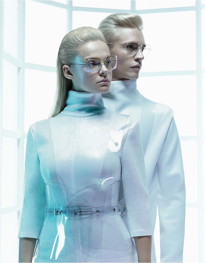 Here, cat-eye style 1589 (left) and aviator style 2917 portray the collection’s futuristic feel.