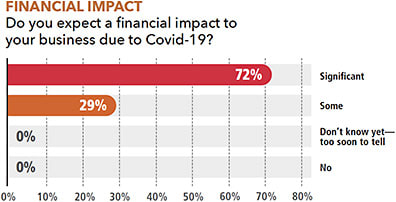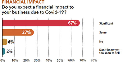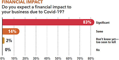 PERCENTAGE OF SURVEY RESPONDENTS WHO EXPECT A “SIGNIFICANT FINANCIAL IMPACT” ON THEIR BUSINESS FROM THE COVID-19 CRISIS.