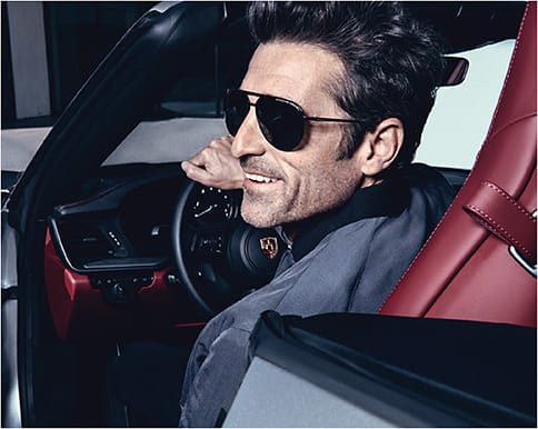 Here, Dempsey sports the Porsche Design P8688 sunglass, which features innovative Vision Drive Polarized XTR lens technology, developed in partnership with motor sport specialists, for supreme color contrast and glare protection.