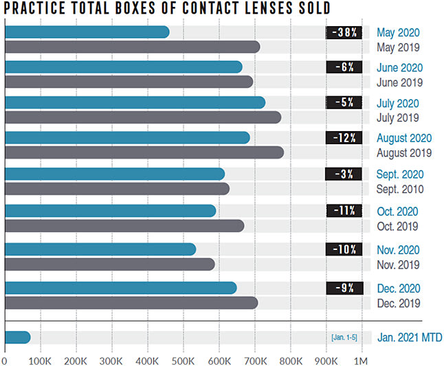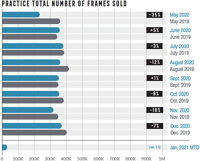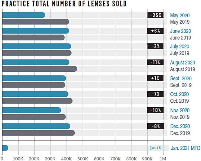 Read on for the revealing real-time data from GPN covering more than 2,900 practice locations across the U.S., served up in partnership with Eyecare Business. We are tracking data on practice exams and patient payments, plus frame, lens, and contact lens sales from coast to coast on a weekly and monthly basis.