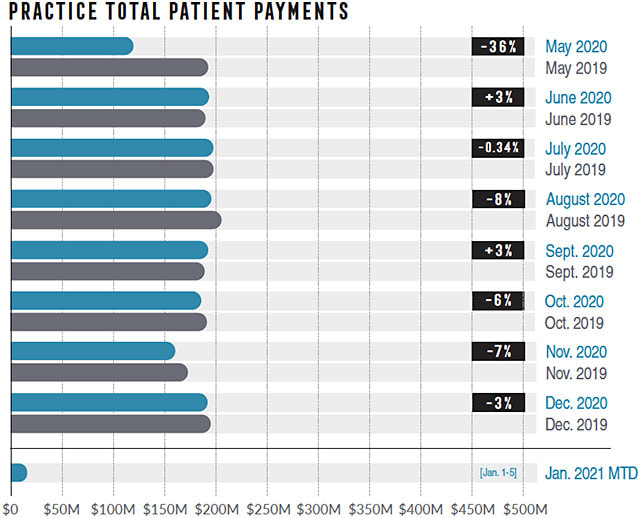 There was better news in patient payments, which tipped back to just 3% down year over year in December, up from 7% down in November.