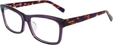 Pictured is the Nine West NW5193X, a fashion-forward frame with a jewel-toned front paired with temples in tortoise.