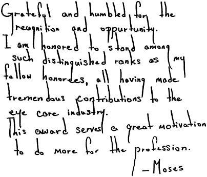 Among his accolades: OAA Future Leader Award and NYSSO Future of Opticianry Award. —D.P.