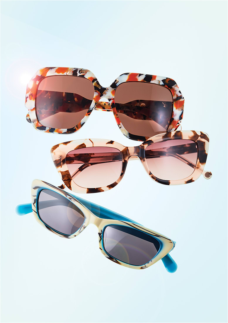 Sunwear amps things up with everything from bold, new patterns to watercolor effects and translucent tortoises.