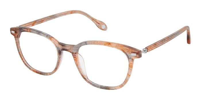 The Fysh 3716 from WestGroupe is a classic rounded square silhouette flaunting marbled acetate that mixes peachy hues with cloudy gray tones.