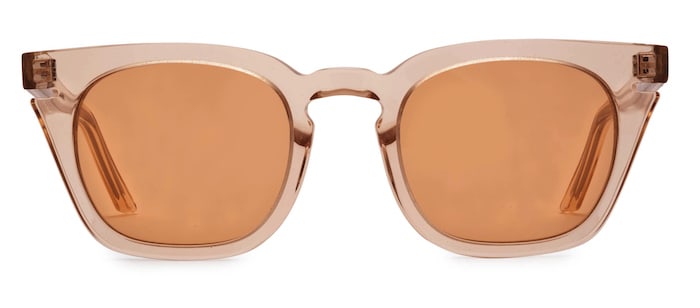Kate Spade New York’s Brea style, oversized acetate sunglasses from Safilo, playfully juxtaposes transparency and glitter in a deep peachy hue.