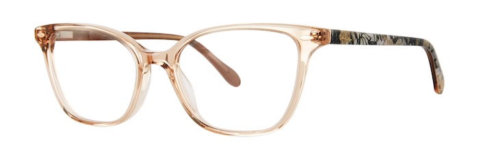 Lilly Pulitzer’s Braunwyn style from Kenmark Eyewear flaunts an upswept petite square silhouette with patterned temples.