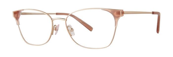 The V592 from Vera Wang, a classic soft square shape from Kenmark Eyewear, features a metal frame with acetate endpieces separating the lens and eye rim.