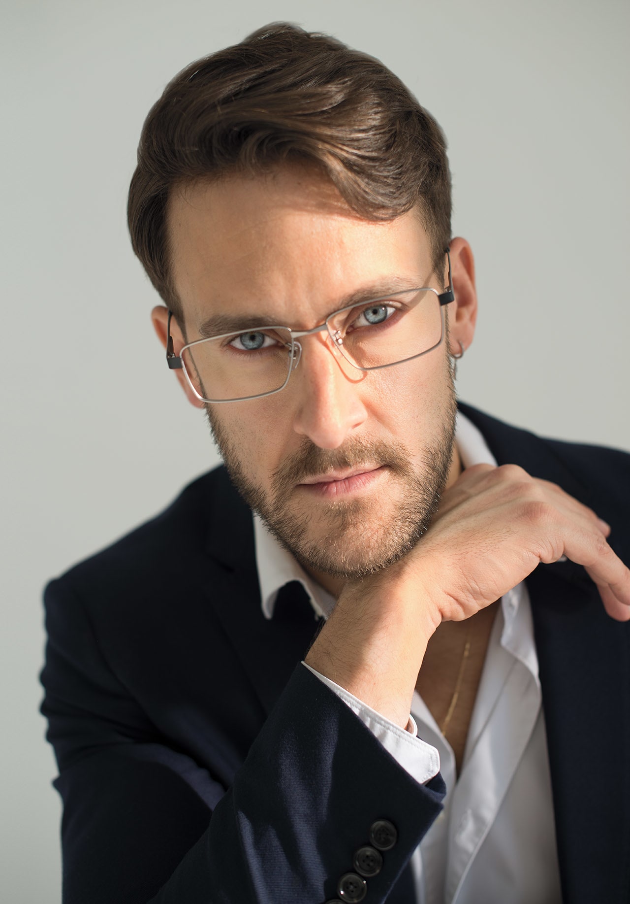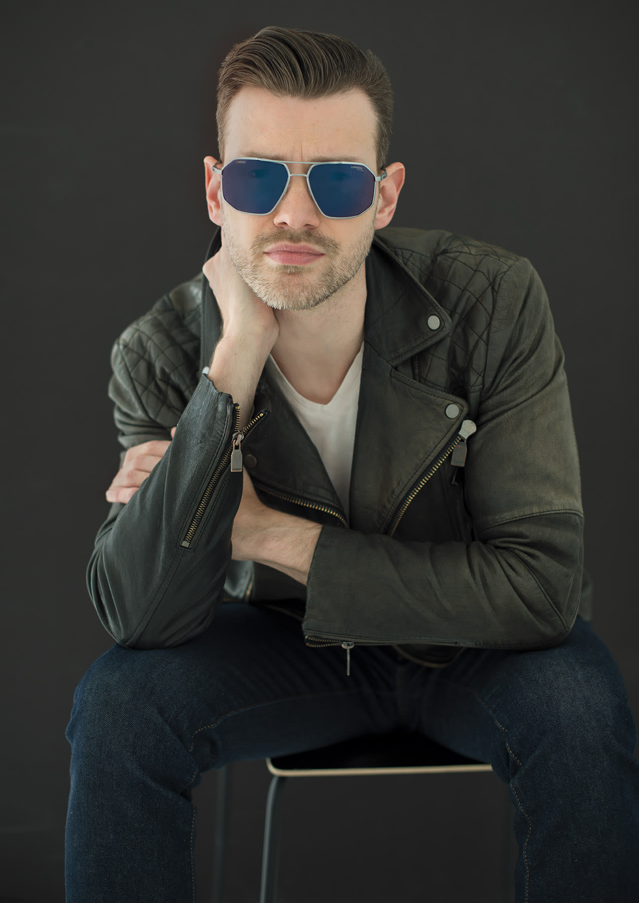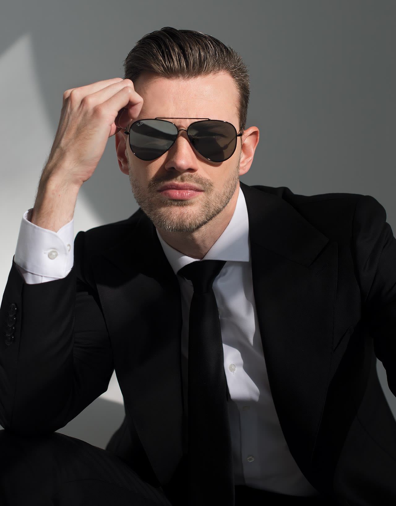 The BMW BW5071-H from Marcolin is a sleek take on a signature rectangular shape in metal. Worn by Broadway actor and dancer Adam Roberts.