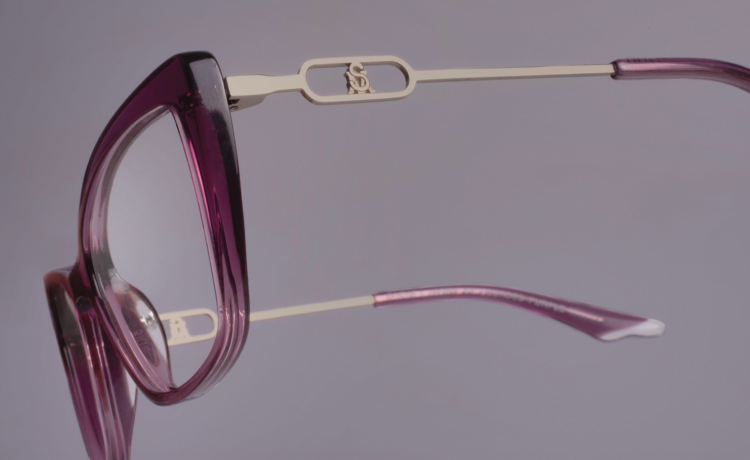 The Draper James DJ1020 (pictured) features a lilac crystal front and temples that change from clear to magenta magnolias.