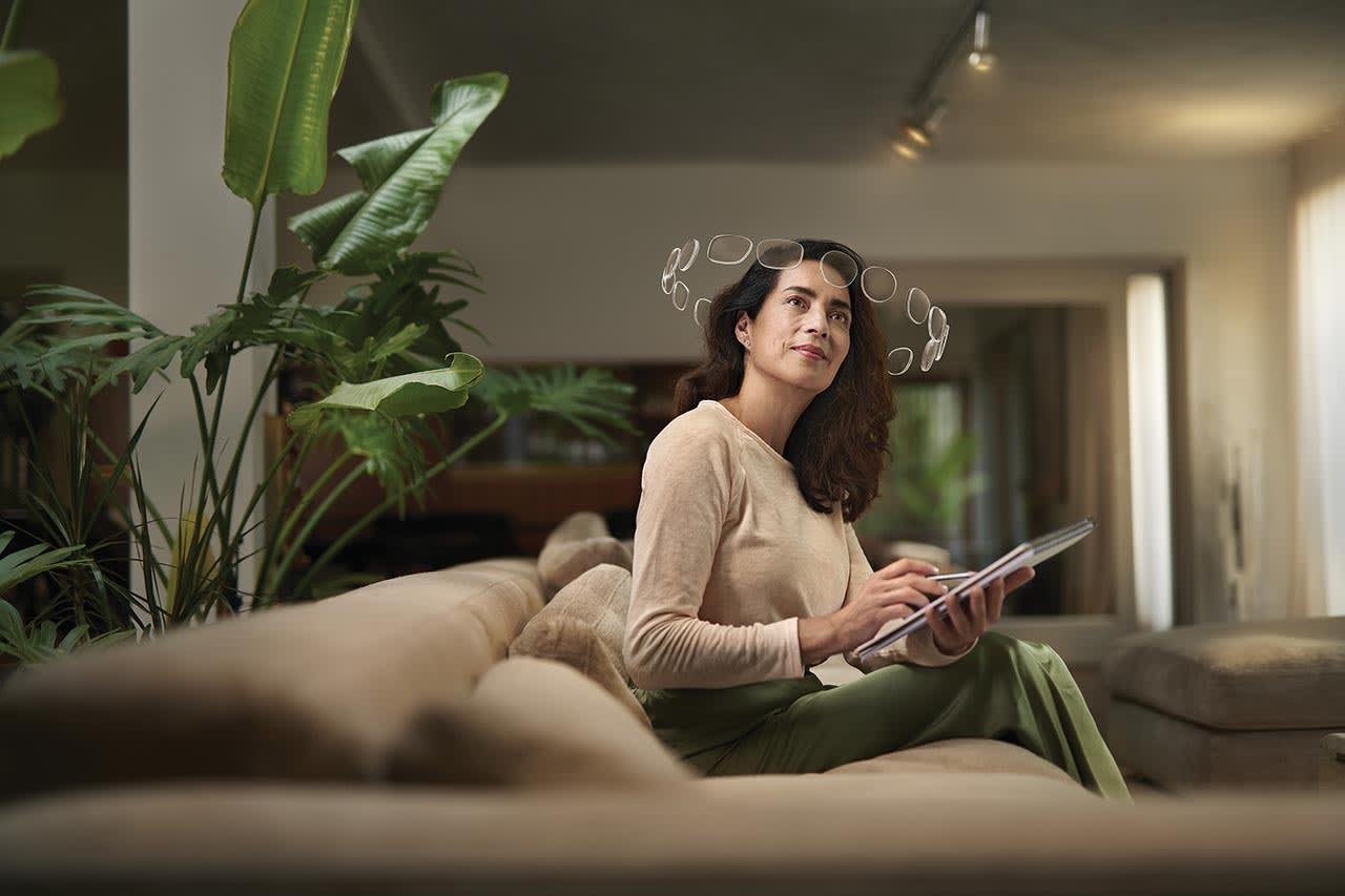 Varilux XR track lenses address modern visual demands with personalized near-vision zones, achieved through the Near Vision Behavior Measurement, which EssilorLuxottica shares is designed to capture four parameters: gaze lowering, reading distance, lateral offset (position of reading materials relative to the body), and visual behavior (head or eye movement during reading). Varilux XR track lenses offer up to 25% more near-vision width compared with the Varilux XR design for comfortable close-up vision, shares the company.