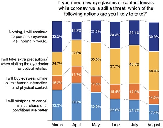 Sept. 25, 2020 — Recent data from The Vision Council's (TVC) VisionWatch Covid-19 U.S. Consumer Study shows that optical consumers are adjusting buying behavior by taking extra precautions when shopping in-person or buying online.