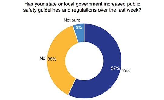Q: Over the last week has your state or local government increased public safety guidelines / regulations, in relation to the COVID-19 outbreak (e.g. mandatory face-mask usage in public areas, restaurant/bar closings, etc.)?