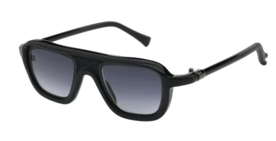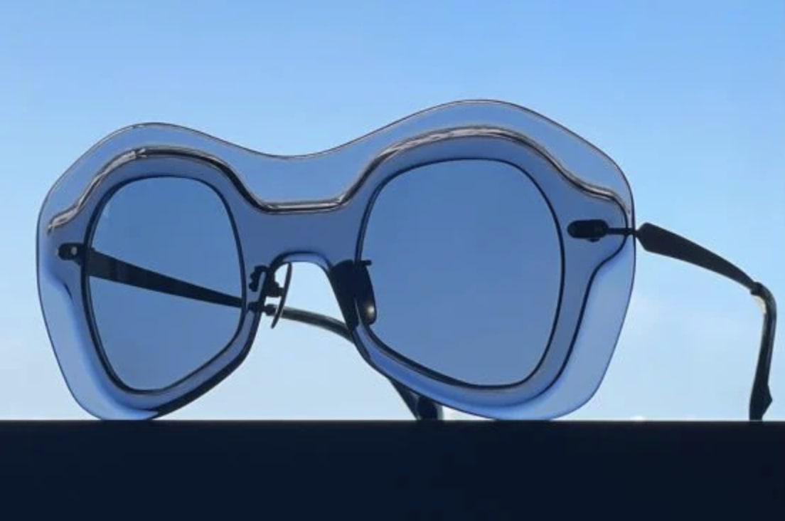SUNGLASSES (LABELS)—Como’s YYSUN502 by Yohji Yamamoto: The YYSUN502 model features a sculptural structure with a micro-perforated metal bridge and gradient lenses.